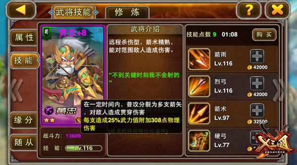 在对抗越来越高速的竞技场中,积攒怒气来触发大招的实用性大大降低,而凭借小招来克敌制胜已然成为主流打法!就像黄忠这样,小招的群伤+单伤都非常惊人的武将,正在逆袭成为《X三国》的主力阵容,得黄忠者得天下,绝非虚言!
