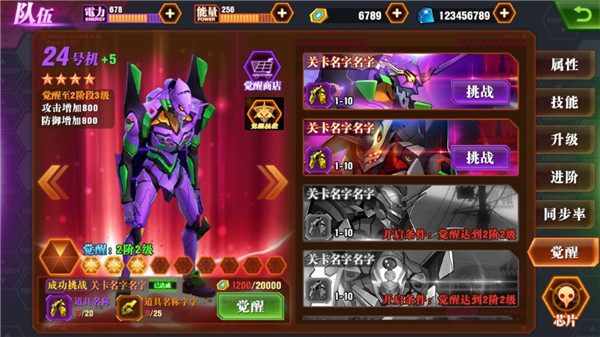 激战岌岌可危,人类的世界需要你的拯救,驾驶员觉醒,用激情点燃你的战斗!在《新世纪福音战士OL》觉醒玩法中,驾驶员进阶所设关卡十分新颖,层层关卡,通关进阶,装备奖励不断升级,点燃你的激情!当然想要进行驾驶员觉醒,首先玩家需要达到相应级别才行。 同时,每级、每阶需要消耗不同的道具数量完成不同的觉醒任务。全新觉醒玩法与之前的虚拟训练、城市搜索玩法相比,更具壮观的游戏体验,势必带你玩转更刺激的EAV世界!觉醒吧!少年! ![]() 【EVA觉醒 更刺激更壮观的冒险体验】