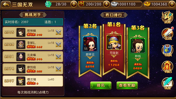 在这里,你可以用你那长江逝水的态势争夺三国无双的首位,获得金币的数量和道具的奖励是不可忽视的。