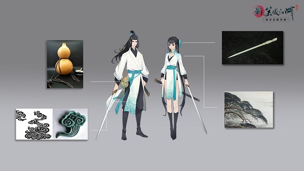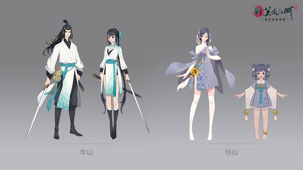 在角色已经初具雏形之后,就要着手进一步深化角色细节内涵,也就是画龙点睛的部分。以华山派弟子为例,门派校服采用了明亮清新的青、白二色搭配,并在细节处融入汉服的精华元素。