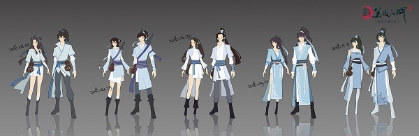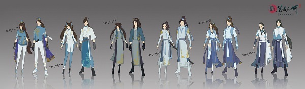 《新笑傲江湖》手游项目组对角色设定的执着程度完全不亚于对于场景的构建。想要设计出合格且具有特色的国风人物,需要经历过无数次的推翻与尝试。哪怕是前期的一个华山派设定的出稿,就经历了11次的变化!细小的颜色变换,形态的微调甚至设定的彻底变化,并非在原稿上擦擦写写就能完成。重新引用参考,勾勒线条,丰富设定,在这个过程中产生了大量的手稿,至今已足有300G之多。而在这个过程中,也逐渐形成了一套极高的人物设计标准,让每一个江湖角色真正的注入名为国风的灵魂。