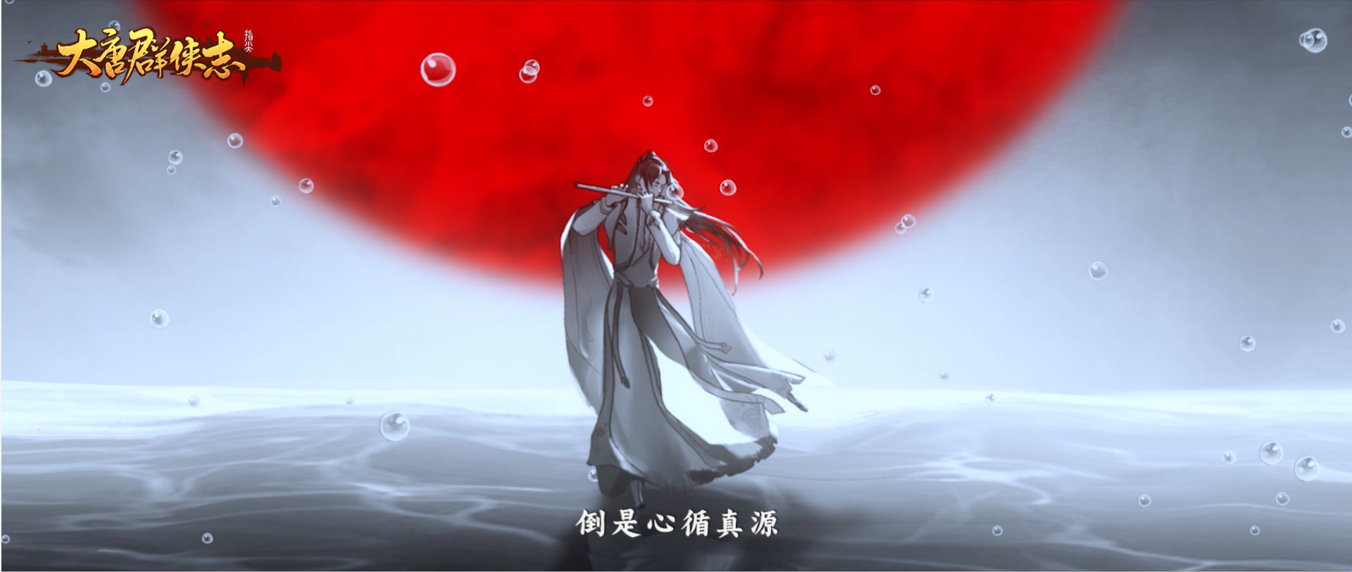 正值狂风骤雨间,海上却有笛声从四面悠然而起,顷刻,漫天风雨凝固,天降异象,海上缓缓升起一轮红月。光影之间,只见王遗风站立在一叶孤舟的尾端,影影绰绰。幸得王遗风仗义出手相助,海面才回复一片风平浪静。是夜,海水倒影着的模糊红月,还有两人伟岸的身影,随海风吹拂泛起圈圈涟漪,消散而去……