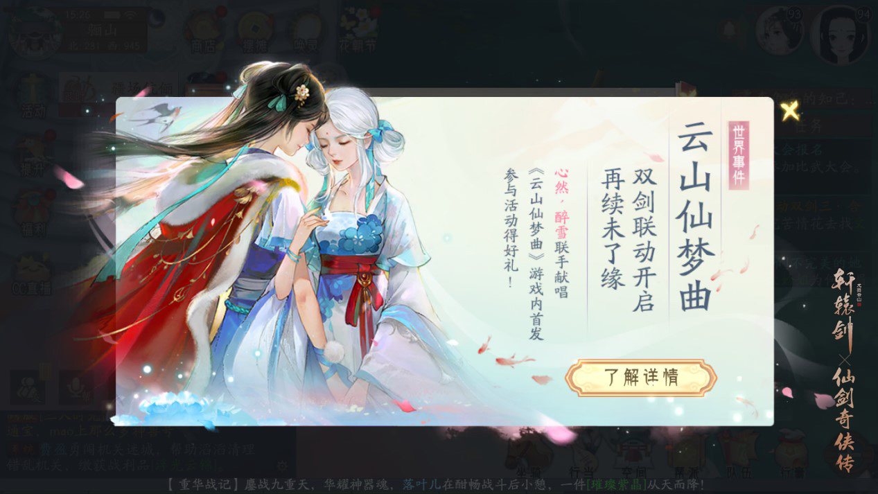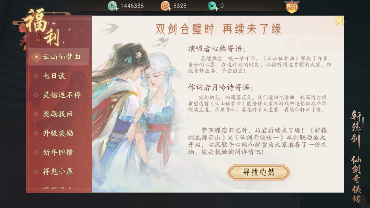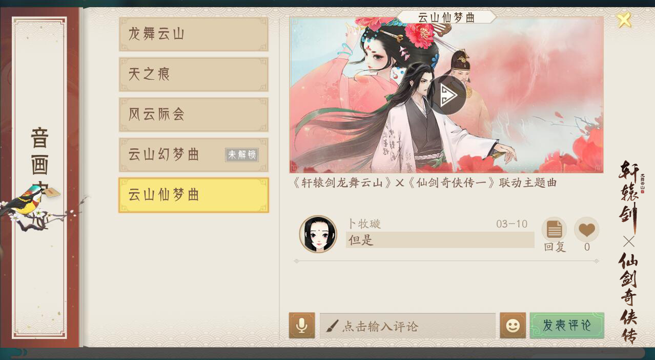 再续未了缘,《轩辕剑龙舞云山》X《仙剑奇侠传一》联动主题曲PV解锁活动开启 网易盛唐传说绝美大作《轩辕剑龙舞云山》X《仙剑奇侠传一》联动火热进行中,此前全新联动主题曲一经曝光,便让各位少侠回首旧时感动。近日,《云山仙梦曲》PV唯美亮相,解锁活动也于游戏内正式开启! 【云山仙梦,再续前缘】 双剑联动主题曲《云山仙梦曲》由忠实玩家、音乐人月吟诗创作,知名古风歌手心然、醉雪联袂献唱。一句“终不忘,与君再续未了缘”,就将侠士们带回往昔记忆中的那些感动瞬间。 ![]() 灵镜拂尘,唤一梦千年。《仙剑奇侠传一》经典角色赵灵儿、李逍遥、林月如穿越时空,在《轩辕剑龙舞云山》中拾取旧忆碎片。古风与流行音乐元素相结合,选用笛子、古筝等民族器乐,男女声对唱娓娓道来。时光飞逝,少年依旧如初,一曲终了,梦似轮回,前缘不忘,今朝再续。 ![]() 【仙音缥缈,视听盛宴】 此前,联动主题曲已在游戏内“轩辕琴韵”玩法中亮相,诗情画意的歌词拨动着少侠们的心弦,令人浮想联翩。《云山仙梦曲》PV更是将词曲中的故事描绘成一幅幅唯美画卷:逍遥与灵儿初遇于仙灵岛落花满天的莲池边,月如于月色甚美时执伞等待逍遥归来……在联动主题曲PV中,《轩辕剑龙舞云山》与《仙剑奇侠传一》中的主角悉数登场,演绎一幕幕动人情景,为双剑奇缘更添几分色彩。 ![]() 本周,研发团队特开启《云山仙梦曲》解锁活动,备上多重好礼,与君再续未了缘。玩家在游戏内与心然、月吟诗、醉雪NPC互动,协助心然取回《云山仙梦曲》曲谱,完成日常韶乐任务后可收集解锁道具“双剑之乐”,把被拆成几个篇章的乐谱交由月吟诗即可合成完整曲谱。 ![]() 【梦唤千年,情系双剑】 随着联动主题曲的解锁,音画中心内的主题曲PV也将一同开放,少侠可前往驻足反复欣赏。在这里,邀回忆谱曲,化深情为词,词曲与美景交相呼应,玩家亦可沉浸于视听盛宴。 ![]() 此外,《轩辕剑龙舞云山》X《仙剑奇侠传一》联动同人作品征集大赛正在火热进行中。以歌唱云山,以舞入仙梦,诸多少侠通过创作同人作品,将自己心中的云山仙梦演绎出来。 ![]() 剑端觅道,画里寻仙。《轩辕剑龙舞云山》X《仙剑奇侠传一》联动主题曲PV解锁活动惊喜降临,盼梦回蝶恋旧忆时,与君再续未了缘! 关于《轩辕剑龙舞云山》: 缘起双剑,梦回云山。网易盛唐传说绝美大作《轩辕剑龙舞云山》X《仙剑奇侠传一》联动重磅开启!以匠心重炼经典,以赤诚再塑国风,3D技术呈现立体水墨画卷,奇趣玩法领略别样仙侠世界。双剑合璧,经典新生,诚邀少侠共赴全新盛唐之旅! |