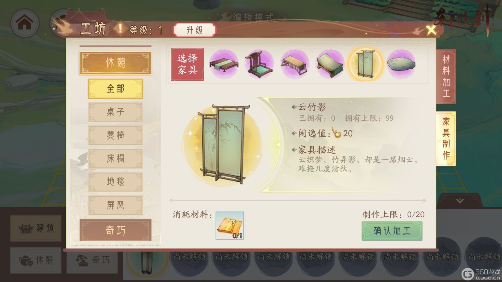 在家园工坊内,少侠可对种植采矿收获的原材料进行加工,自行制作获取绝美建筑、景观、家具。桃源生活,自给自足,岂不乐哉美哉?