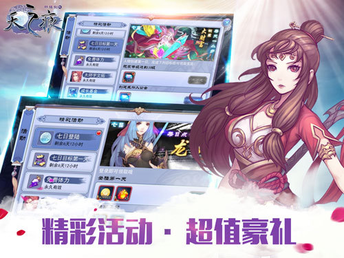 【精彩活动high翻天 超值豪礼送不停】 《轩辕剑之天之痕》感动开测的同时,官方更是准备了多重精彩活动。创建角色开始,只要七日内连续登陆,就可获得史诗级英雄龙女,除此之外,不仅可以领到金币、灵魂精华、材料包、英雄碎片、钻石等奖励,还可以轻松获得橙色武器;首次充值和累计充值均有不同的道具奖励:英雄美猴王、金币等超值大奖在等你哦;此外,还有成长基金,返还大量钻石,助你一臂之力!值得一提的是,传说级英雄宇文拓只要在累积充值达到一定额度时,即可获得;更有情牵十五载月卡,超值福利等你来拿!