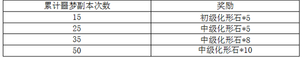 c) 活动内容:清明除魔天地间,活动期间,累计通关噩梦副本达到对应次数,即可额外获得化形翅膀培养道具,让您实力更上一层楼!