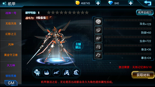 其次,更有新型机甲“无极天炼”,“无极天炼”如其它机甲一样,来源于起点白金作家骷髅精灵的科幻小说《星战风暴》。其中第16卷66章有一段描述无极天炼的话“李尔的无极天炼如同闪电一样冲了出去,天炼心法瞬间提升到极致,李尔的脸色红如血,一道道攻击冲着李尔袭来,瞬间无极天炼进入那诡异的高速急斩之中。”《星战风暴》中无极天炼共有四个技能,分别为:龙剑断空、折射突袭、无极万千剑、万象飓风。