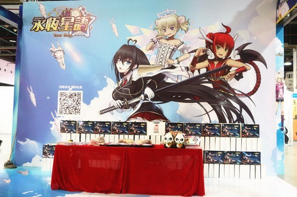 这次魔幻二次元在上海光大会展中心举行,进门就可以看到永恒星语的超大展台哦~!展会上还为各位提供永恒星语的试玩,当场即可体验永恒星语游戏!