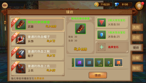 《叶问3》中不止有丰富多彩的装备,还提供了各种功能各异的宝石可以镶嵌在装备上,增加各种独特的属性。使得玩家可以打造专属于自己的装备