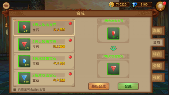 有的玩家会担心自己的手上只有一些低级宝石,无法与高级的宝石相抗衡。有这种担心玩家可以不用再焦虑了,因为《叶问3》里还提供了宝石的合成系统,可以把几个同等级的宝石合成一个高级宝石