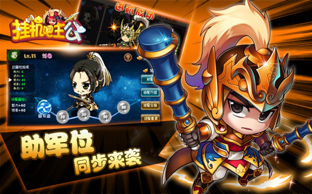 花样玩法,助军来袭 武斗场、过关斩将、世界BOSS吕布、背水一战、公会战……不同的阵营,不同的武将,在《挂机吧主公》中花样战斗,无论是单挑其他玩家,还是群攻吕布,样样精彩等你来玩。 更有全新的援助系统——助军位同步来袭,并将开启一个生命位。助军位的武将不仅能激活上阵武将缘分,还能加成所有上阵武将属性,但同时会消耗银币;银币不足时,助军位加成功能自动关闭,加成属性失效,但激活缘分的功能依旧存在。更多的详情可关注游戏官网和公众号,种种亮点只为你的期盼! 全新的悠闲三国之旅,尽在此次《挂机吧主公》盛大公测,各路三国武将听凭你的调遣,赶快用智谋来指点三国乱世吧! |