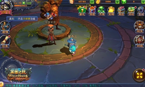 【约战吴京寻找最强高校 万元礼品等你领】 在《英雄之战》游戏主城“英灵神像”下找到NPC吴京,即可登记自己所属高校名称!全国高校哪家才是游戏最强高校?快来《英雄之战》参与登记吧!除此以外,为了庆祝《英雄之战》不删档首发,缤纷奖励活动诚意献上。在游戏中升级到30级即有机会获得现金奖励!还有战力排行、公会排行奖!万元现金礼品蓄势待发!