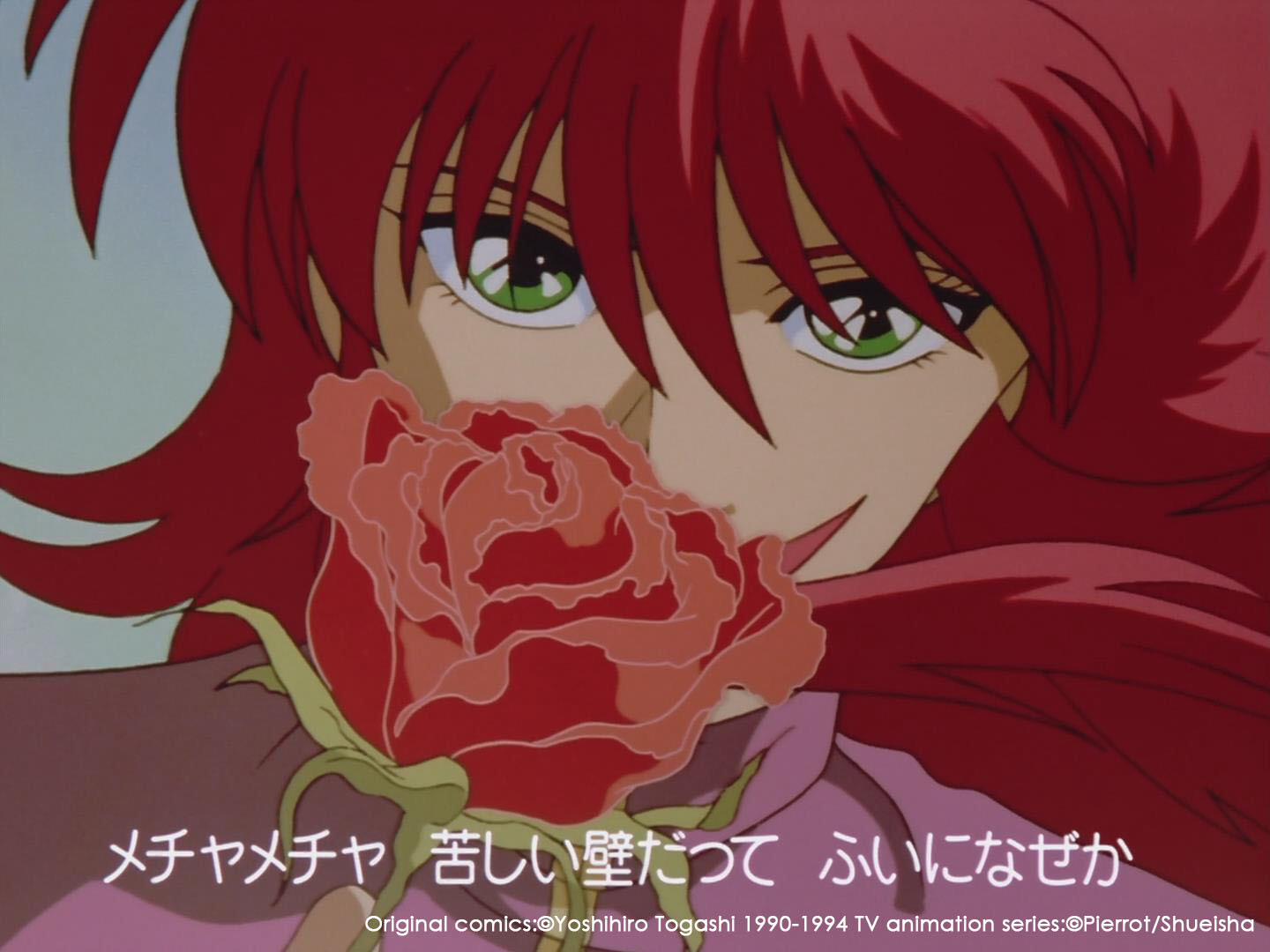 (出自TV第01话-00'54'') 红发、红蔷薇 与绿色的双眸相映衬 垂眸轻嗅蔷薇 下一刻他手中的花化作荆棘之鞭 一看便知 华丽是这个男人的代名词 【再现!妖狐的真面目】 暗黑武术会藏马vs里浦岛一战中 里浦岛利用藏马的同情心 对处于劣势的藏马使用了“逆玉手箱” 万万没想到 这个可以让人回到婴孩状态的道具 却偏偏让藏马回到了最初的姿态——妖狐