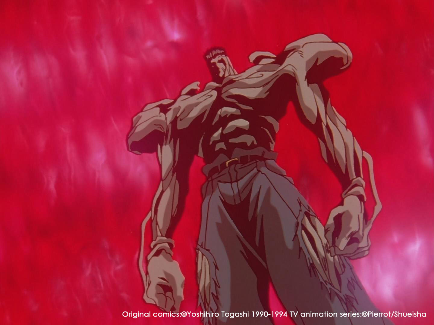 (出自TV第64话-05'19'') 这个可怕的男人力量何止强大 却不择手段去“激励”对手来打败自己 而看到倒下的桑原 超越了悲伤的幽助也激发出了前所未有的力量 这是一场沉重的死斗 —— 何谓强大 何谓永生 幻海最后的教诲 你还记得吗? |