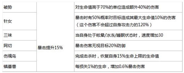 为式神搭配御魂,首先要确定自己需要哪个四件套效果(有的式神不需要四件套),然后再为每个部位选择合适自己的属性,这样才能配出强大的效果! 最后,我再给大家例举几个常用式神的御魂搭配! 首先是常见的R和SR式神,SSR单独说 1.萤草:任意的攻击二件套x3 因为萤草的奶量取决于攻击力,所以选三套攻击15%的二件套为最佳方案(有数据指出树妖四件套+攻击2件套不如穿三套攻击15%) 2.椒图/山兔/雨女:招财猫/火灵/镜姬+生命15%的二件套 这些都属于辅助位,招财猫和火灵是再好不过的选择,然后再带生命值增加15%的两件套增加生存能力 3.蝴蝶精/桃花妖:树妖四件套+生命15%二件套 树妖四件套增加治疗量,然后再带生命15%的两节套增加自己的血量 4.三尾狐/九命猫/姑获鸟/傀儡师/妖狐:针女四件套+暴击15%二件套 多段攻击的式神带针女效果是极好的,再带暴击二件套增加针女触发概率 5.鬼使黑/络新妇/鬼女红叶/:破势四件套+暴击15%二件套 这些都是属于一发直接爆炸的式神,建议破势,再带两件暴击套提升暴击几率 6.雪女:雪幽魂/钟灵四件套+生命15%/效果命中15%两件套 作为一个控制型式神,雪幽魂和钟灵再适合不过,两件套可以选择增加生命15%的来提高生存能力,也可以选择效果命中15%的来提高控制能力 7.惠比寿:生命15%两件套x3 惠比寿的奶量和生命上限直接挂钩,所以无脑堆生命值就好啦!同时还提高了生存能力! 8.白狼/骨女:网切四件套+暴击15%二件套 由于白狼技能关系,成型的白狼基本100%暴击,所以网切再适合她不过。骨女技能自带无视防御,再叠加网切的套装效果,效果不错!(骨女也可以带针女) 9.座敷童子:涅槃四件套+15%二件套 作为一个鬼火提供者,最优先的当然是保命!! 接下来是SSR: 酒吞童子:轮入道/狰四件套+暴击15%二件套 酒吞童子的核心是叠加被动技能层数,轮入道和狰的反击都可以叠!至于用哪个,看你喜欢了。 茨木童子:破势四件套+暴击15%二件套 一发爆炸吧,boom! 大天狗:针女四件套:暴击15%二件套 大天狗的AOE属于多段攻击,针女无疑最优选择 小鹿男:火灵四件套+暴击/生命 二件套 小鹿男是个什么位置都可以打的SSR,本身偏向辅助,但头槌的伤害不低。喜欢输出的朋友可以带暴击二件套。或者可以带生命15来提高生存能力! 青行灯:破势/轮入道四件套+暴击15%二件套 灯姐虽然偏向辅助,但是输出也是很可怕的,可以带破势来强化输出。也可以带轮入道榨干对面 阎魔:火灵/招财猫/镜姬/涅槃四件套+生命15%二件套 阎魔真的是一个可以很多变化的式神,强力的单体控制使她容易成为集火对象,推荐使用保命/辅助类御魂 荒川之主:网切四件套+暴击15%二件套 网切配合荒川被动提高暴击伤害可以有很大提升,相比破势和针女,个人更喜欢网切! |