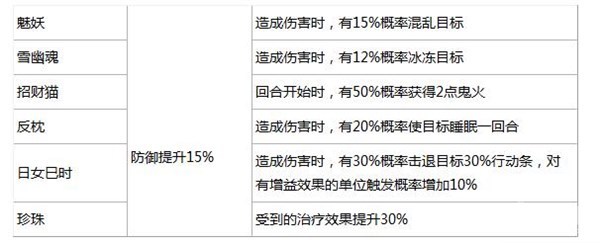 在式神的详细资料中,有御魂这一选项。主要获取途径有商店,主线副本和御魂副本。(每天晚上19-21点的狩猎战也会产出!) 商店:点商店——道具——神秘:每1小时刷新一次,随机产出御魂(建议等大后期再买,前期千万别浪费钱!等后期买6星的! 42级以后才能刷出6星!) 主线副本:主线副本产出各种御魂,每一章节产出的御魂都不同,普通模式最高两星,困难模式最高能产出四星的。 御魂副本:就在探索界面左下角,点击上面的?可查看哪几天掉落哪些御魂!(5层开始掉落5星御魂,7层开始掉落六星!) 有些萌新不懂什么是御魂,其实御魂可以理解为式神的装备,只不过不是分头部胸部手部之类,而是分一二三四五六总共六个部位!其中每个部位的属性也各不相同。 御魂分主属性和副属性,主属性是指第一个属性,每次升级御魂时主属性都会100%提升。副属性指除了主属性之外的属性,御魂每升级到3,6,9,12,15(15级就满级啦)级时会强化一次副属性(至于强化哪个副属性是随机的。如果副属性不满4个,可能会随机增加一个副属性) 这里给真·萌新补充一下强化方法!点开你式神的御魂页面→找到你想要强化的御魂→点击它→点强化→然后选择其他御魂当作强化材料→点击强化 就OK啦!(强化御魂是一件非常消耗金币的事情,所以前期金币一定要省着花!!) 我们来看看不同部位的御魂的不同主属性 一号位: 固定主属性为 攻击 二号位: 随机主属性为 攻击,防御,生命,速度中随机 (最好的是速度!这个属性很关键而且只有二号位才会出速度) 三号位: 固定主属性为 防御 四号位: 随机主属性为 攻击,防御,生命,效果命中,效果抵抗 五号位: 固定主属性为 生命 六号位: 随机主属性为 攻击,防御,生命,暴击几率,暴击伤害 (最好的是暴击几率,5星主属性暴击御魂强10可以加28%,6星强15可以增加55%!) 除此之外,不同御魂还有不同的套装效果! 下面是我给大家整理的各种套装的两件套,四件套效果!