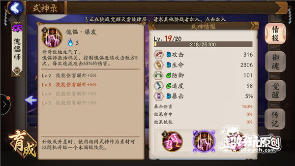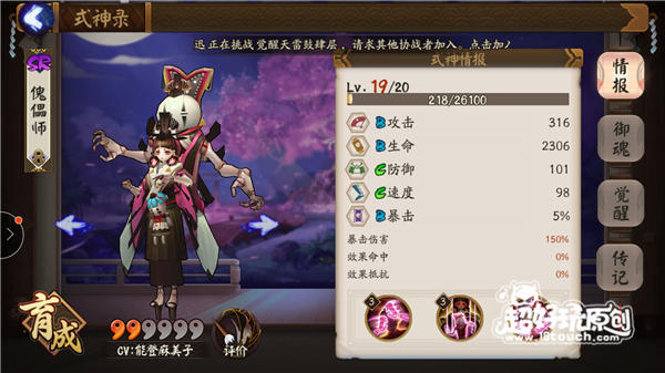 傀儡师时小编最早抽到的单体伤害,但是风头很快被三尾盖过了,毕竟三尾觉醒容易。在抽到茨木之后,小编就彻底遗弃了她。直到后来的鬼王狩猎,才让小编重新将她拾起,带针女的傀儡师让狩猎变得异常轻松,丰厚的奖励也让小编准时开狩猎。可以说,傀儡师在狩猎中获得的收益,已经远远超过培养她所投入的成本了。对于那些不知道如何打狩猎的小伙伴,不妨看看自己的库存里是否有傀儡师,有一套不错的针女,后面的,就不需要多说了吧~ 御魂搭配
