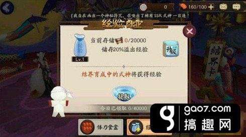 这个经验酒壶就是用来储存结界育成里溢出的经验,这样的话就不会浪费了!