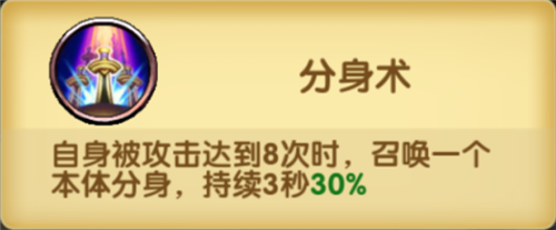 图3 增加自身物理攻击10%,对于战士而言,物理攻击显得更为重要。再配合该被动技能,可以对敌人造成更高的伤害。前排输出的最佳人选之一。被动技能二:分身术