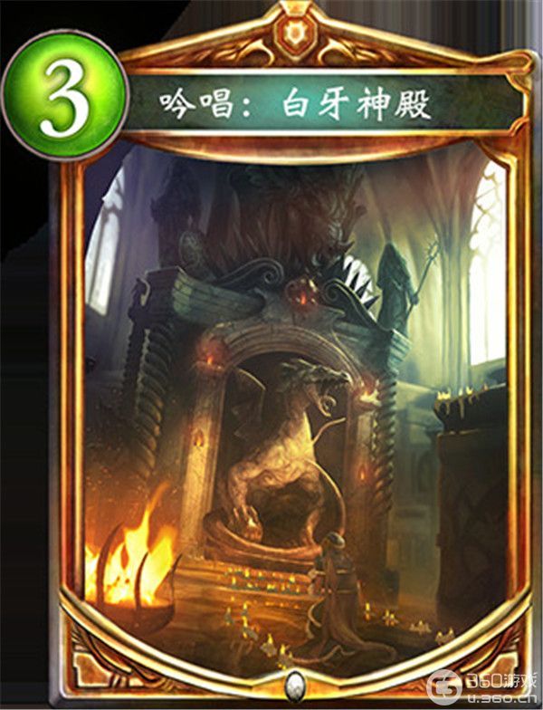 虽然效果不像宝石姬那样持久,但吟唱:白牙神殿也能多次触发神社。而在触发若干次神社,并为主战者回复一定数量的生命值之后,白牙还能带来6/6的站场随从,向对手施压。依靠白牙制造的场面优势取胜也是神社主教的游戏计划之一。