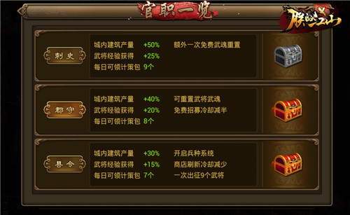 “小局制”SLG手游《朕的江山》以玩家的官职为依据,每一局的匹配战斗都是相对公平的。各位主公们提升自己的官职可以匹配到更加强力的对手,各类资源的收益也会随之增加。昨日游戏更新后,新增了不少的福利玩法,其中包括丰厚的官职礼包,各位主公来了解一下吧!![]() 现在只要你提升到新的官职段位,都能获取一个对应的礼包,官职越高奖励越好哦!什么橙色装备包、武魂重置卡应有尽有,大量的功勋宝箱、计策锦囊以及银两当然也不会少。哎嘛,这是要发了呀,真是升官发财啊。而此前的所有未领取礼包也能一并补领,上线就是一笔巨款哦! ![]() 福利不止于此,游戏在原有的功勋任务、君主任务基础上,加入了全新的剧情任务。现在只要主公们加入战区就能接取剧情任务“讨好老板娘”,完成之后将会“开启君主形象更换”。相当炫酷的福利呢,想要全新的君主形象就不要错过啦!此外,还有一系列的剧情任务和成就在等着你挑战哦! ![]() 不要以为送完福利就完了,本次更新还新增了一个战区——宗师区:最高等级将提升至35级,州牧及以上的主公可以加入。而且一大波新的兵种来袭,大家又要重新招兵买马、策略搭配了,怕是忙不过来了啊。 《朕的江山》是一款以三国为背景的“小局制”SLG手游,题材类型契合广大玩家需求,采用新颖的轮回小局制游戏模式,精简内政系统,游戏目标明确。在游戏中玩家穿越至三国时期,扮演一方诸侯招兵买马、发展内政、扩张势力,最终吞并天下。 |