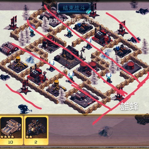 这幅图片更好因为它只有特斯拉塔,我们只要多生产雄蜂,分几路进军,就可以不费其他的兵,把基地摧毁了哦。 这关主要是消灭特斯拉塔,因为它随着进度,特斯拉塔的力量越来越大,我们的兵力的破坏力不大,所以我们应该善于用兵,每种兵有自己的特点,关键是看怎么利用它们。 相信大家都是很聪明的,下面的关卡应该可以自行了结,今天我的心得和经验分享到这,谢谢大家来看,下一次的分享大家敬请期待,再见… |