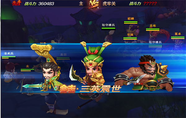 《主公驾到》讲义不一样的剧情视角,让玩家亲身参与到三国的故事里面,当三英不再战吕布,而是由玩家率领大战吕布貂蝉夫妇二人组,基情和爱情将在这里碰撞!这款Q版风格的三国游戏采用更具策略的3-3式站位,英雄武将分为法、物,2大类属性,同时不同人物的组合搭配还将附带额外的羁绊特效。