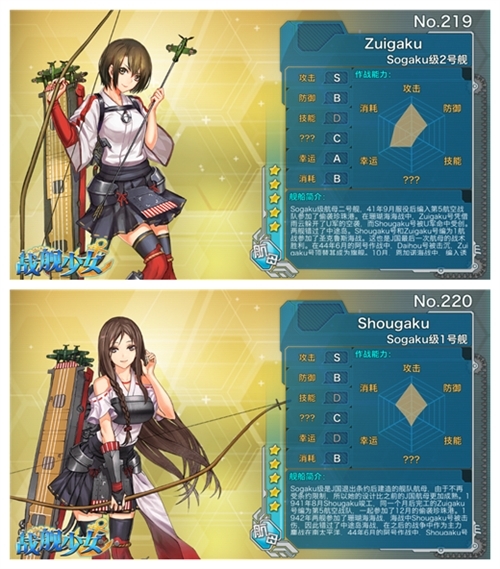 点击就送的两艘航妈,伴随我们一路走来的两姐妹,与提督之间的情深似海,被称为“太太”和“小姨子”。同时,她们也是《战舰少女》最强的两艘航母——20/20/35/10的完美飞机搭载量、提升15%相邻船只载机威力,航妈大队中永远不可缺少的两人,也是提督心中永远不可缺少的两人。