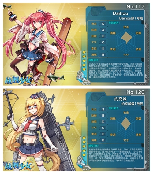 B25化身大黄蜂的姐姐,20/20/30/5的搭载量让战斗机在抢占制空权的时候难有发挥,50的耐久也是航母脆皮之最——然而约克城的改造计划已经公布,极有可能成为《战舰少女》史上第一艘六星航妈,所以——提督们请务必善待这个没有长大的妈妈。