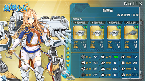目前版本火力的最高的两门战列/战巡主炮分别是26火力“E国三联16英寸炮(改)”和24火力的“金闪闪妹控6(MK6)”,但这两门杀器的获取并不容易,26炮只有通过改造罗德尼和纳尔逊才能获得一门,妹控6则需要拼脸做研发,前者要有闲、后者要有钱…… 作为罗纳姐妹的默认装备,“E国三联16英寸炮”虽然只是蓝色品级,但火力也足足有23点,与前卫、黎塞留或安德烈亚多利亚默认携带的金色主炮不相上下,这几乎是提督们的战列/战巡制式装备了。