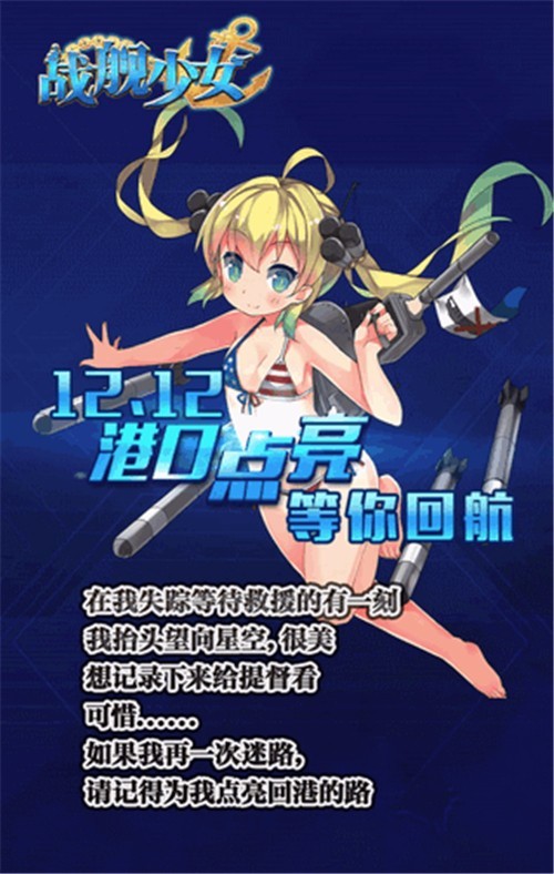 噢忘记一件重要的事了,双十一各位提督手腕上的创伤还没有完全康复,双十二又要来了,但我们《战舰少女》是个有爱的组织,绝不开办无良购物团——剧透一下,派趣科技将在双十二期间围绕“提督的港口”展开一系列有爱活动,切勿错过哟! |