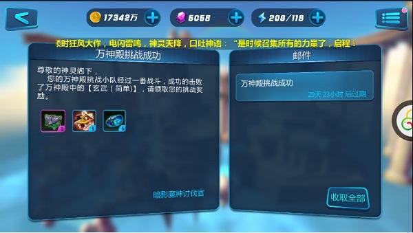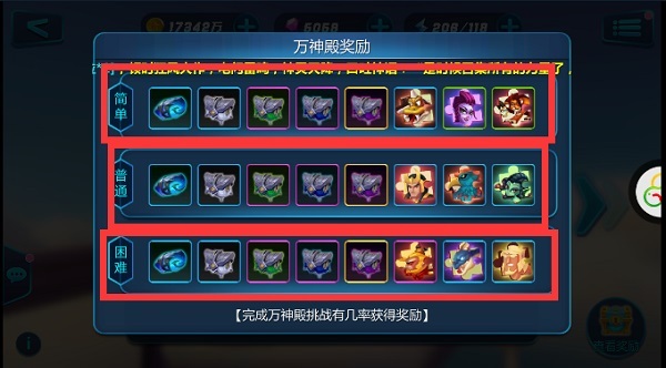 【万神殿】玩法众神风云游戏中的两大团队玩法之一,有很好的团队能力,以及社交能力。没事可以带带小弟,带带妹子,想想是不是还有一些小激 动哦,下面给大家简单介绍一些玩法吧。 ![]() ![]() 进入方式:等级达到32级,点击悬浮在空中的那座神殿,进入神殿界面可看到三个+的图标,三个玩家组队,或者随机系统给的机器人一起组队都可以。 ![]() 当人数足够的时候会自动进入备战界面倒计时,倒计时期间不能进行其他操作,倒计时过后可以自行选择自己上阵的神灵,点击战斗按钮进入副本, ![]() ![]() 难度分三种为会简单丶普通丶困难,难度越高获取的奖励就越多(随机获取神器材料和神灵碎片)。战斗胜利后会根据输出伤害的排名发送奖励(通过邮件)。 |