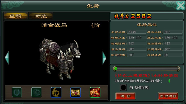3. 坐骑装备:通过打坐骑副本获得坐骑装备,可以装备到坐骑身上的对应位置,坐骑装备提升的属性可以直接增加给人物哦! 不同的坐骑还有不同的外观显示,萌呆酷帅一应俱全,是不是很心动?快来掌上征途游戏中培养一匹属于你的坐骑吧! |