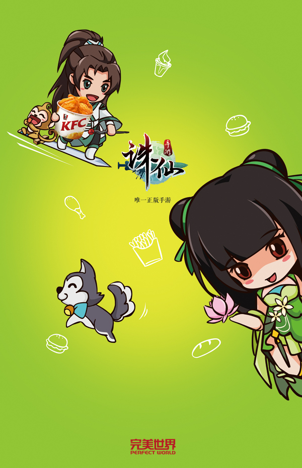 图3:《诛仙手游》Q版雪琪形象曝光 百家门店活动即将展开 不仅是风格独特的主题门店,8月1日起,深圳、珠海、海南、广西等城市指定近300家KFC餐厅开展《诛仙手游》主题活动。届时,“仙来一桶”将登陆主题店,“碧瑶”、“雪琪”两位coser将亲临现场陪同用餐,更有大批精美周边礼品送出。不仅如此,点餐还有《诛仙手游》刮刮卡相送,iPhone大奖等你拿! ![]()