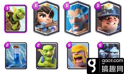 卡组思路 这个卡组的主要核心就是先打防守,当我们防守成功后,各种骗对面的法术,当对面的法术交了的时候,我们就可以利用矿工+哥布林飞桶,或者亡灵大军的套路直接强行打一波伤害。当然如果对面有采集器的话,我们也是可以挖的。 核心卡牌 公主:后排输出和骚扰卡,可以很好的解对面的低费卡,比如哥布林,亡灵,小骷髅等,同时最重要的一个目的是可以骗剑雨。 哥布林桶:偷塔专用卡牌,或者说是骗剑雨的卡,这张卡牌配合亡灵大军,能达到骗了一个剑雨,另外一个疯狂输出的状况。如果我们的哥布林桶被剑雨解了,那么矿工+亡灵大军的输出就很高。 矿工:核心偷血卡,矿工的用处有很多,比如解公主,蹭血对面的公主塔,或者拉仇恨等用处,解对面的采集器等,如果商店有卖,建议买,矿工啦了仇恨,配合其他小卡输出爆炸,比如飞桶,亡灵大军。 搭配卡牌 亡灵大军:核心空战卡,如果我们的公主或者飞桶骗了对面的法术,比如剑雨,那么我们的亡灵大军输出就是爆炸的,同时亡灵大军的另外一个目的就是对付别人的如气球,天狗等卡。 电击法术:异常好用,只需要两费,可以消灭对面的低费卡,比如哥布林,哥布林投矛手,或者骷髅兵等。同时还可以打断别人的攻击,让其停顿1秒。 野蛮人:防守卡,防守反击卡,高血量和伤害,唯一不怕剑雨的群怪卡,一般我们都用来放野猪,其他情况也可以,比如皮卡火枪等,当我们解了对面卡的时候,如果费用充足,还可以打一波反击。 冰法师:核心防守卡,我们都知道,冰法的防守能力是很强的,可以减少对面移动和攻击速度,也可以作为辅助攻击。高血量的冰法,很难被解,不惧怕火球法术,骚扰性很强。比较克,哥布林,亡灵,骷髅等。 哥布林:主要是解卡,解对面的巨人,皇家巨人之类的卡,这里配合矿工的时候,可以在矿工拉仇恨时,桥身后放下,刀哥一旦靠近公主塔,爆发出的伤害绝对是惊人的。 起手思路和满费选择 起手思路:起手方面的话我们有2个选择,可以放一个公主在后排看对面如何解,一般情况下会死剑雨或者矿工,这样我们可以判断到对面的卡,还有一个起手就是矿工,如果对面出了采集器,我们就可以用矿工来挖。 满费选择:当我们的费用满的时候,第一选择是公主,一般情况下看到公主,对面会很快交剑雨,这个时候我们就可以来矿工+亡灵大军或者飞桶的超强偷塔了。 替换卡牌 哥布林替换加农炮:这里的哥布林主要是解卡,我们的矿工可以搭配的卡有很多,亡灵和飞桶,所以是不需要哥布林搭配的,换上加农炮,对于我们的防守能力能进一步提高,所以可以替换加农炮。 |