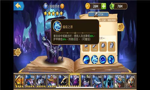 英雄名称:瘟疫使者 英雄职业:牧师 隶属阵营:幽暗 初始星级:5星 获取途径:英雄坛抽取、活动兑换。 英雄背景:? 罗坦德吉利无疑是历史上内心最黑暗的红衣主教之一,由于在大教堂中攫取濒死贵族的财产,教团认定他犯下了异端之罪并判他到瘟疫病房工作,那里的环境会让他患上一种长期的慢性疾病,教团认为,不管他的免疫力再强,也必死无疑。 罗坦德吉利的确染上了瘟疫,然而他不仅没有病死,还发现这种瘟疫在提供他力量,他变成了真正的瘟疫使者。正式宣称自己为瘟疫的教皇后,他开始环游世界,在所到之处散布瘟疫,随着一个个村庄消失在他引起的瘟疫中,他恐怖的力量还在不断成长。。。 英雄技能: 【灵魂收割】 对血量最少的敌人造成190%伤害,并偷取敌人20%攻击,持续3回合,同时恢复随机3名我方英雄相当于45%的血量。