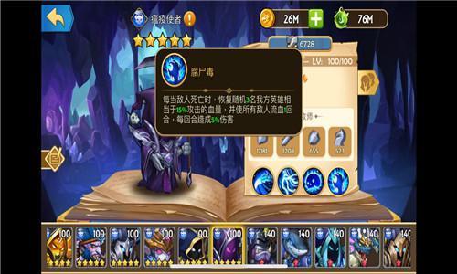【腐尸毒】 每当敌人死亡时,恢复随机3名我方英雄相当于15%攻击的血量,并使所有敌人流血1回合,每回合造成5%伤害。