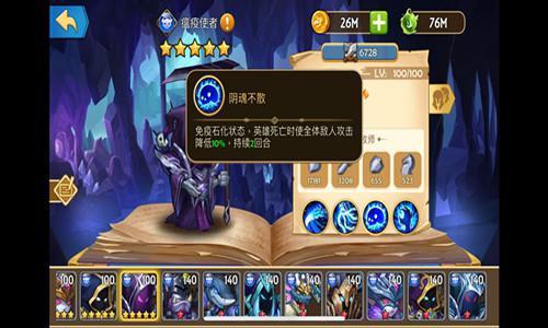 【阴魂不散】 免疫石化状态,英雄死亡时使全体敌人降低10%,持续2回合。