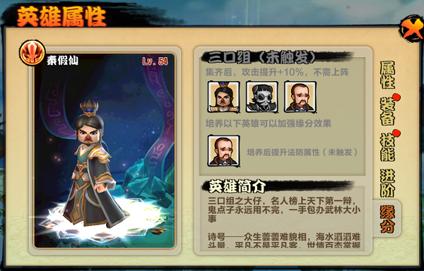 以上就是秦假仙在游戏中的介绍啦~当然只有自己体验了才是最棒的!小编后续会持续为大家整理霹雳群侠中各个英雄的哦~