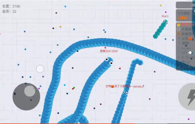 4、当你越来越长,越来越多的蛇会被你击杀,你会成为地图上最长也是看起来最强大的蛇,甚至长到很多小蛇一出来便撞死在你身上,这看起来有些残酷,但也符合社会规律和自然进程:适者生存,不适者淘汰。