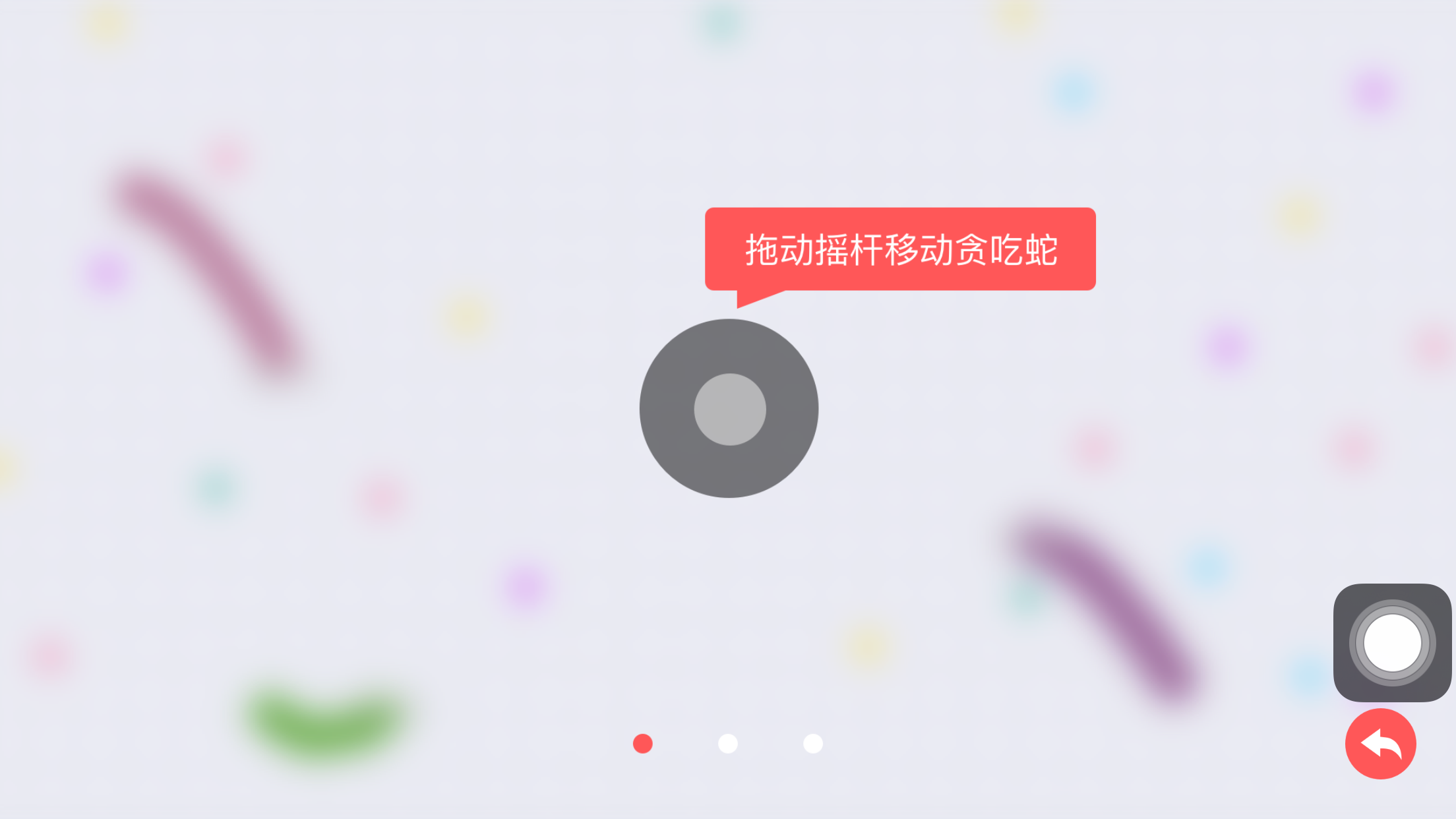 1、拖动摇杆移动贪吃蛇,刚出生时包括头总共有5节,每次6个能量光点增加1节。
