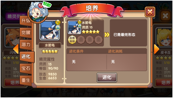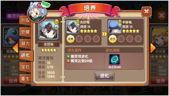 首先,进化是有等级要求的,在精灵未达到目标等级时,是无法经行进化操作的。同时,进化是有属性石头的消耗的,这个石头我们可以通过指定副本和每日的活动副本获得。大部分的精灵满足以上要求时,就可以进化了。我们的小精灵进化之后,除了属性会有一定的提升之外,技能也会发生变化,变得更加强大哦!无法进化的精灵,系统也会有相应的提升,这样即使是之前不了解口袋精灵的玩家们,也可以迅速上手哦!