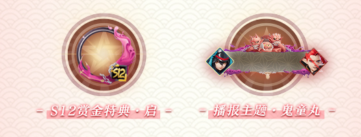 赏金特典在S12赛季开启后6周期间达到目标等级,即可免费解锁[S12 赏金特典·启]和[播报主题·鬼童丸]。
