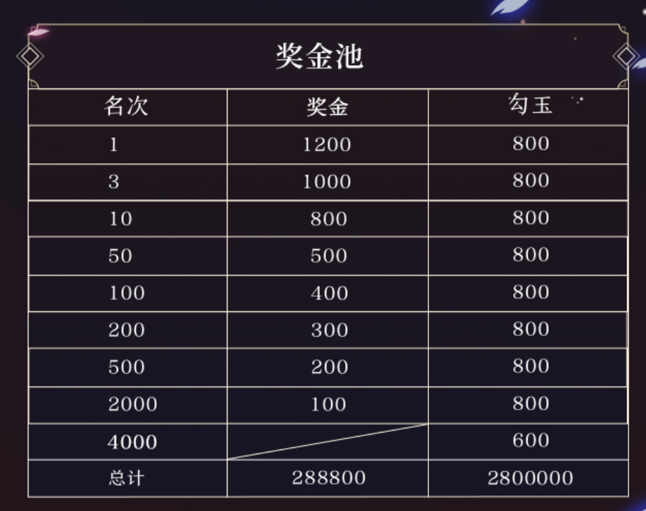 本次[京极决战]开启后,所有参与[京极决战]的阴阳师大人,将根据最终结算时的积分和排名,瓜分2800000勾玉及288800现金奖励!