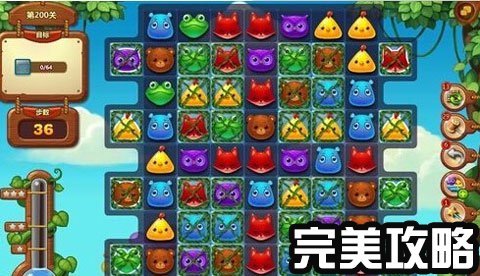 开心消消乐200关第一点是对藤蔓障碍的清除,第二点才是冰块,前期很难打经常没有可移动的动物,遇到这种关卡我习惯性的选择从最上端或者是中间开始,秉着有基础组合的一定要移动,接着是看到4连的千万不会错过,然后直接引爆性能将更多的动物解放出来。