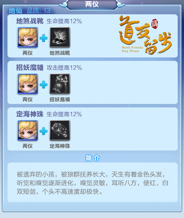 上山入海,斩妖除魔,纵然有吞食天地的能耐,也双拳难敌四手,伙伴越多力量越大。但再大的军队,也需要一个领导,而这就是主角,也就是各位道友们在《道友请留步》中所扮演的那个角色。