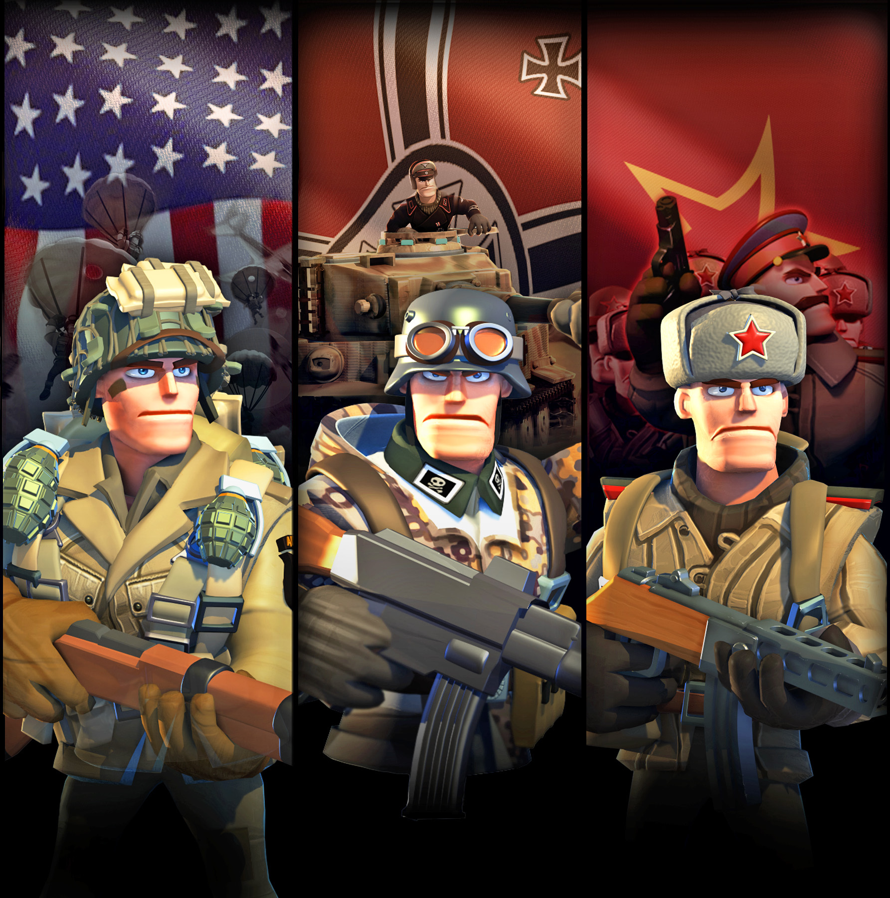 怎么样,和玩具总动员是不是有一些相似呢。《我的战争》诚邀原迪士尼美术设计团队加盟,将游戏中的所有角色都精心设计。折让每个角色都有很鲜明的特色。每一只部队里的每一个角色都会精雕细琢。101空降师,狙击手,反坦克兵各个都栩栩如生。在那些著名元帅的召唤下,赶快开启一场我的战争总动员吧。