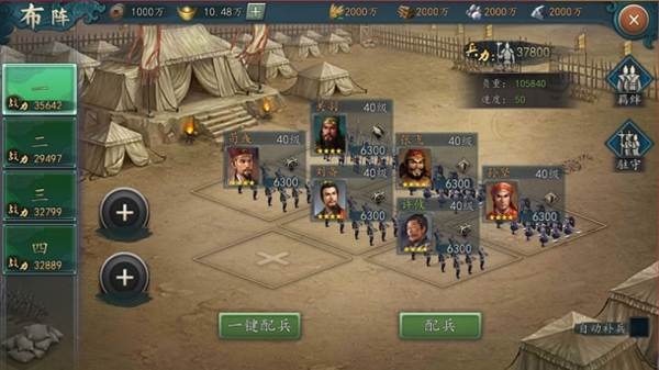 在游戏中,若想称霸一方自然也少不了排兵布阵。于是在战争打响之时,不妨让身为主力的关羽派少量精锐骑兵或步兵直接冲入对方本阵,造成敌方恐慌后,一举斩杀其主帅,最后大军并进,合力收官!