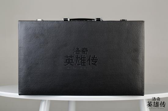 礼盒的整体包装为正面印有“洛奇英雄传”字样的黑色手提箱。