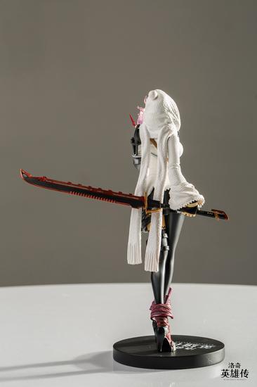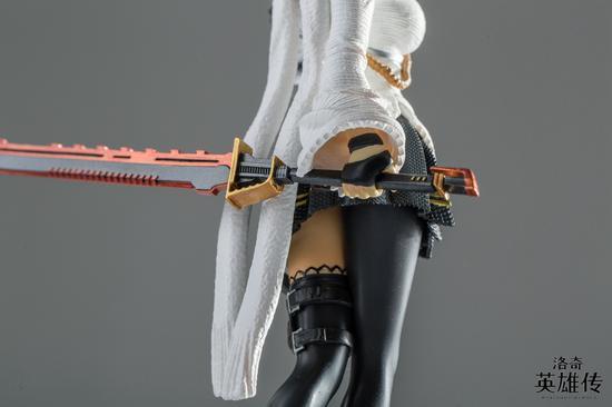 手办的装束为艾莉莎专属套装铁娘子套,右手后持长剑,左手魂器,与游戏内角色实拍对比,可以说是高度再现。